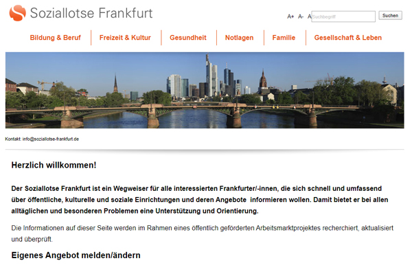 Der Soziallotse ist ein Internetportal für Frankfurter Bürger*innen und Beratende in öffentlichen Einrichtungen. Weiterlesen