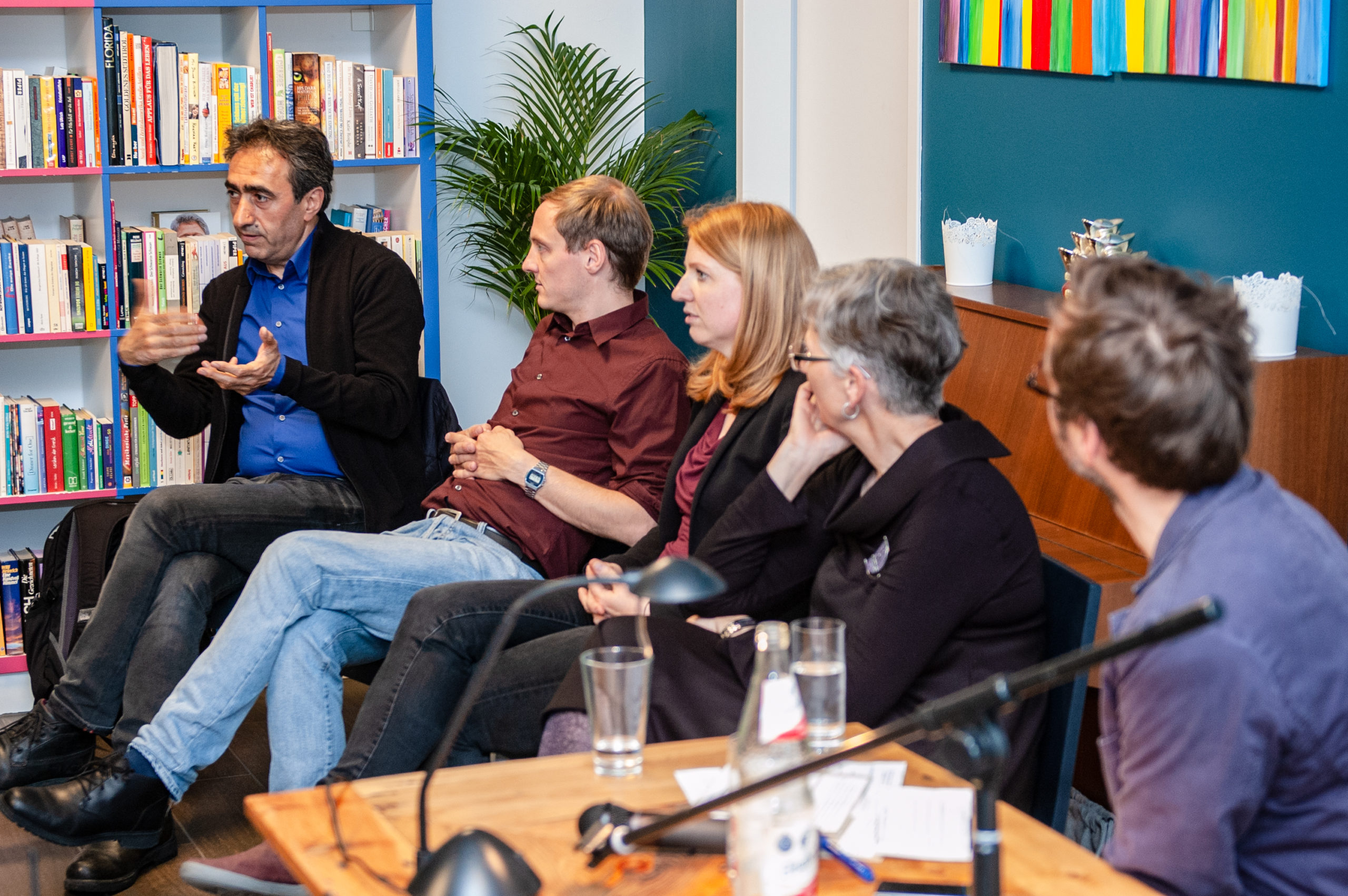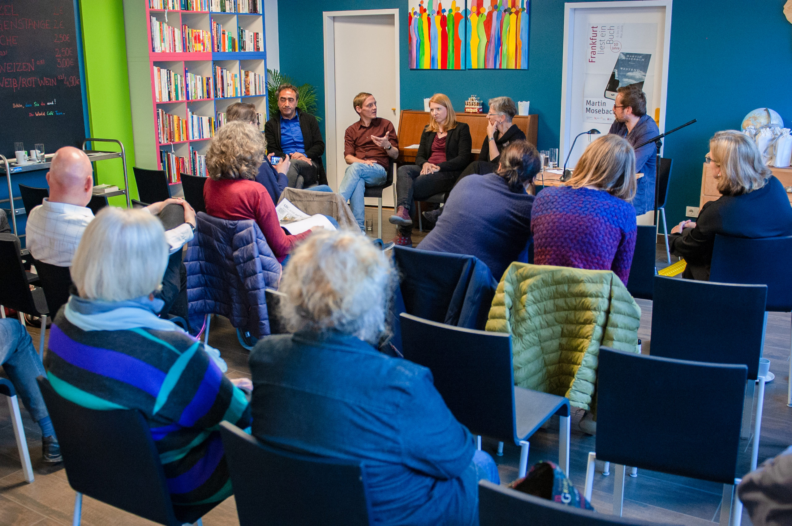 Die GFFB bedankt sich bei allen Diskussionsteilnehmern, bei Heidi Ecks und allen Gästen für den gelungenen Abend! Heidi Ecks Lesung aus Westend (Martin Mosebach) eröffnete den Abend und gab den Zuschauern einen Eindruck über den Wandel des Westends in den 60er Jahren. Ein idealer Einstieg, um sich der heutigeren Thematiken in Bezug auf Bevölkerungsverdrängung, Gentrifizierung und ständigem Wandel des persönlichen Raumes bewusst zu werden. Zur Diskussion boten Sebastian Schipper (Uni Frankfurt), Eyup Yilmaz (die Linke), Maria Schmedt (Quartiersmanagement Gallus) und Katharina Wagner (Stadt Frankfurt) einen spannenden Einblick in derzeitige Debatten rund um die Themen Wohnen und Bevölkerung, sie schafften es die Probleme der Haushalte und Menschen zu schildern und die politischen Restriktionen und Wirkungsweisen sichtbar zu machen. Die Zuschauer konnten sich aktiv über ihren Stadtteilinformieren und aktuelle Bedarfe ins Gespräch bringen.