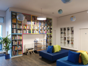 Die Frankfurter lieben ihre mehr als 50 offenen Bücherschränke. Die GFFB gGmbH stiftet jetzt den größten von ihnen. Ausgestattet ist der Schrank mit Belletristik und Sachbüchern aus aller Welt und mit einer reichen Anzahl an Kinder- und Jugendbüchern. Gemütliche Sitzinseln laden zum Schmökern ein, gerne bei dem Genuss eines heißen Kaffees und eines frisch gebackenen Stück Kuchens.